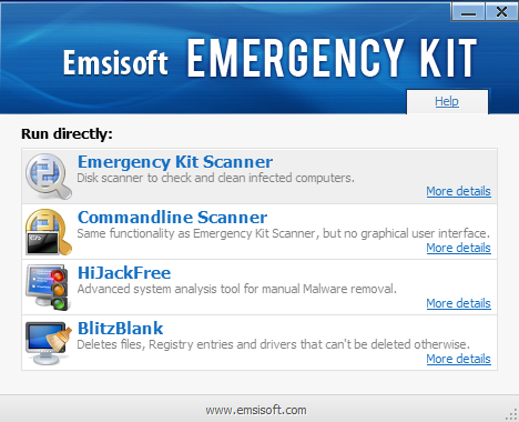 Emergency Kit περιέχει μια συλλογή από προγράμματα που μπορούν να